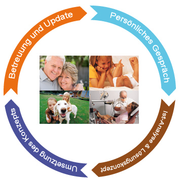 Mit einem zielgerichteten Vorgehen über Analyse, Konzeption, Beratung, Umsetzung und Betreuung entwickeln wir für Sie ganzheitliche Vorsorgekonzepte.